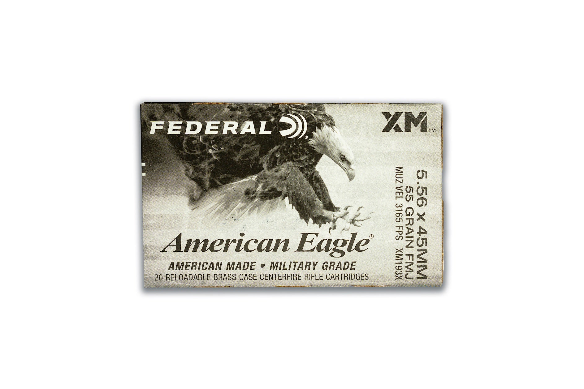 5.56 55GR Federal FMJ (XM193) achieves performance that closely matches comparable Federal Premium® loads for the ultimate real-world practice. It is brand new, brass cased, boxer primed, non-corrosive and re-loadable and is made to military specifications.