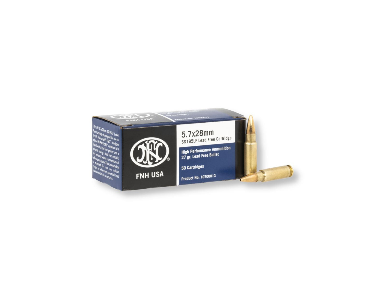 5.7x28mm 27GR FNH Lead Free Bullet (SS195LF) features a 27-grain hollow point aluminum core bullet with a jacket made of copper alloy. The SS195LF also has lead-free powder and primer. For plinking, target shooting, and general range use.