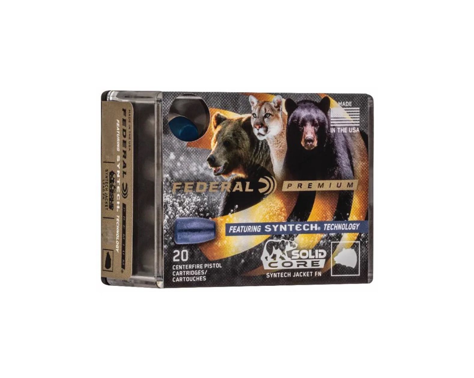 9MM 147GR +P Federal Premium Solid Core (P9HSC1). When wild places put you in a tight spot, keep your cool, rely on your skill and call on the unstoppable performance of Solid Core ammunition, from Federal Premium®. Its flat-nose bullet is formed from extremely hard, high-antimony lead to hold together while blowing through bone and penetrating deep, making it an ideal choice for both hunting and dangerous animal defense. Unlike hard-cast bullets, Solid Core uses a Syntech® polymer jacket to reduce friction and leading without features like wax rings and gas checks.